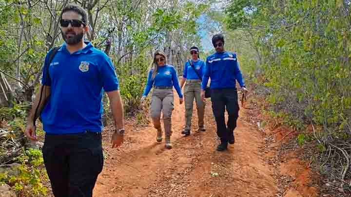 Uma equipe da Polícia Científica realizou, na quinta-feira (15), uma perícia técnico-científica em uma área atingida por incêndio florestal e desmatamento ilegal na zona rural do município de Água Branca. A ação foi conduzida pelos peritos criminais Jana Kelly, Nathalia Gonzaga e Lincoln Machado, da Seção de Perícias de Crimes Ambientais do Instituto de Criminalística, com a presença do perito-geral adjunto, Wellington Melo.